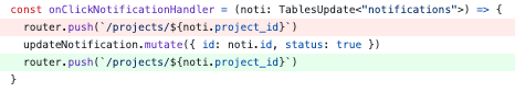 1) 알람 온 게시물로 routing 을 하고, invalidationQueries를 해준 것